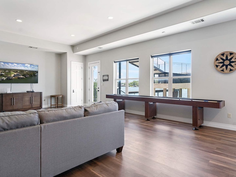 Wake up to lake views and coffee on the patio before a morning swim or kayak ride. Spend the afternoon lounging in the hot tub, playing ping pong, or watching the 75" Smart TV. As the sun sets, grill dinner on the BBQ, gather by the fire pit, and finish the night with games or stargazing from the dock. Perfect for families and friends.